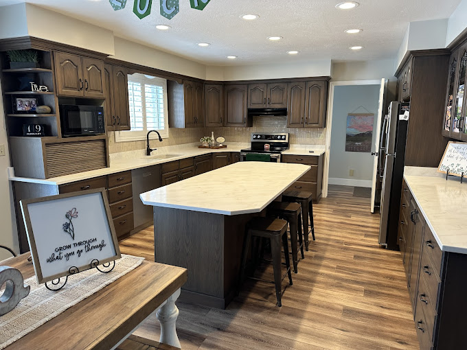 WoodWorks Refurbishing has been revitalizing kitchens and wood surfaces across Utah for nearly 20 years, offering expert cabinet refinishing, staining, and wood renewal services. Family-owned and operated by Derrick Norman, we specialize in transforming outdated, worn, or discolored wood into stunning focal points—without the hassle of demolition. Serving Logan, Salt Lake City, Utah County, and beyond, our hand-applied, high-resin finishes and custom color blends breathe new life into cabinets, furniture, and architectural woodwork.